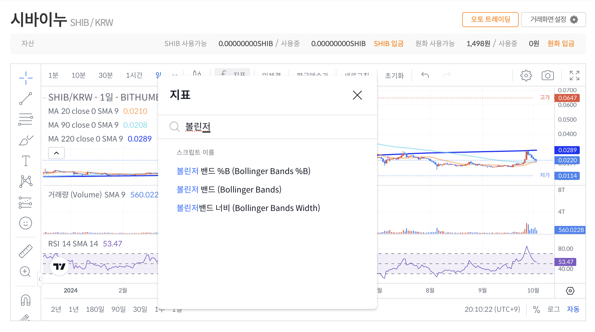 볼린저밴드 지표 추가